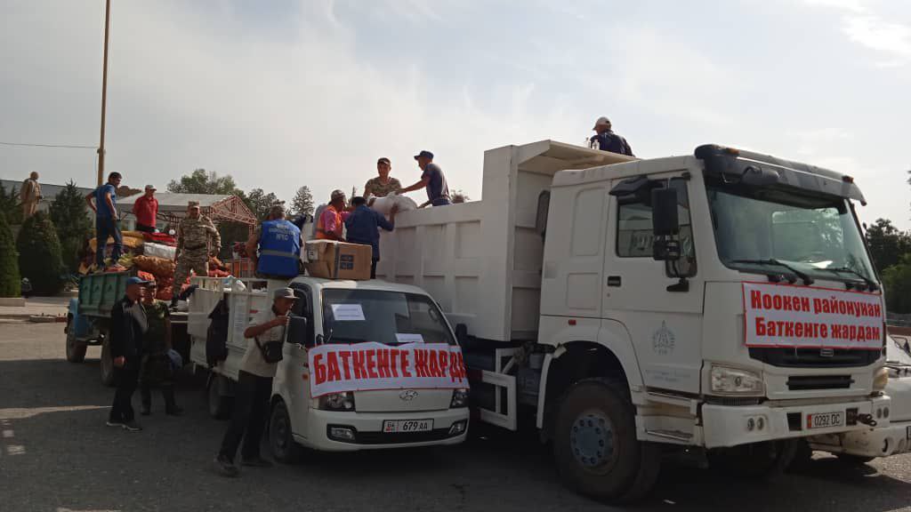 1500 тонна гумжардамдын 264 тоннасы КР ӨКМ тарабынан, 1036 тонна жарандар тарабынан жеткирилген. Учурда кампада 199 тонна гуманитардык жардам турат. Республиканын аймактарынан чогултулган гуманитардык жардамдар оор жүк ташуучу унааларга жүктөлүп, Баткен облусунун аймагына жөнөтүлүүдө», — деп белгиленет маалыматта.