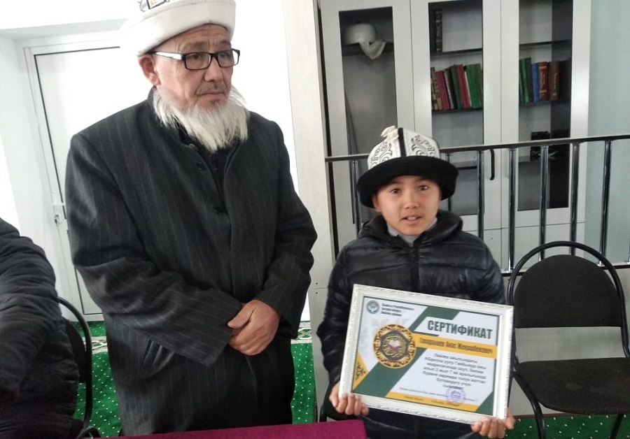 Баткен облусунун Лейлек районундагы Лейлек айылынын кичинекей тургуну Анас Гапаралиевге Лейлек районунун баш имам-хатибинин атайын сертификаты тапшырылды.