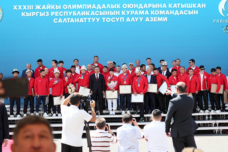 Иш чаранын жүрүшүндө президент Садыр Жапаров Парижде өткөн Олимпиада оюндарына катышкан спортчуларга жана байге ээлерине акчалай сыйлыктарды жана унааларды тапшырды.