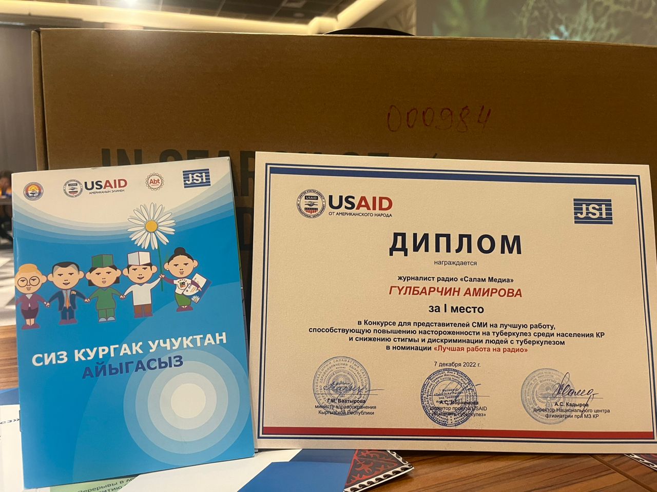 Салам медиасынын журналисти Гүлбарчын Амирова кургак учук оорусу боюнча коомчулуктун маалымдуулугун арттырууга багытталган материалы радио багыты боюнча биринчиликти багындырды.